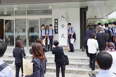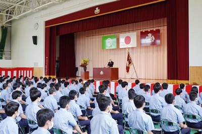 4月から延期になっていた入学式を実施しました。新型コロナウイルス対策をするとともに、時間を短縮して実施しました。