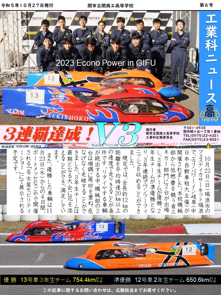 R5工業科ニュース 機械部 Econo Power in GIFU 3連覇達成!