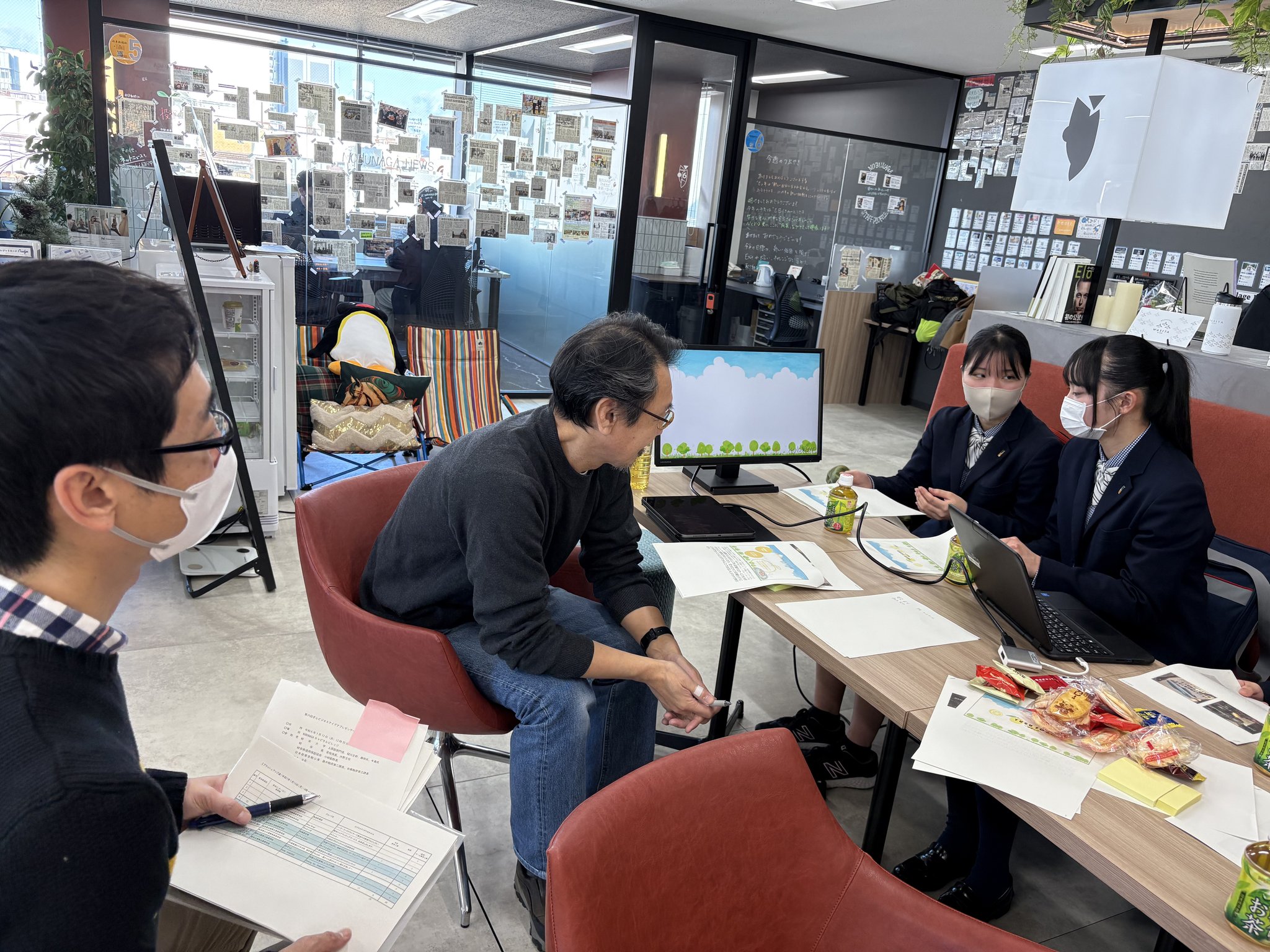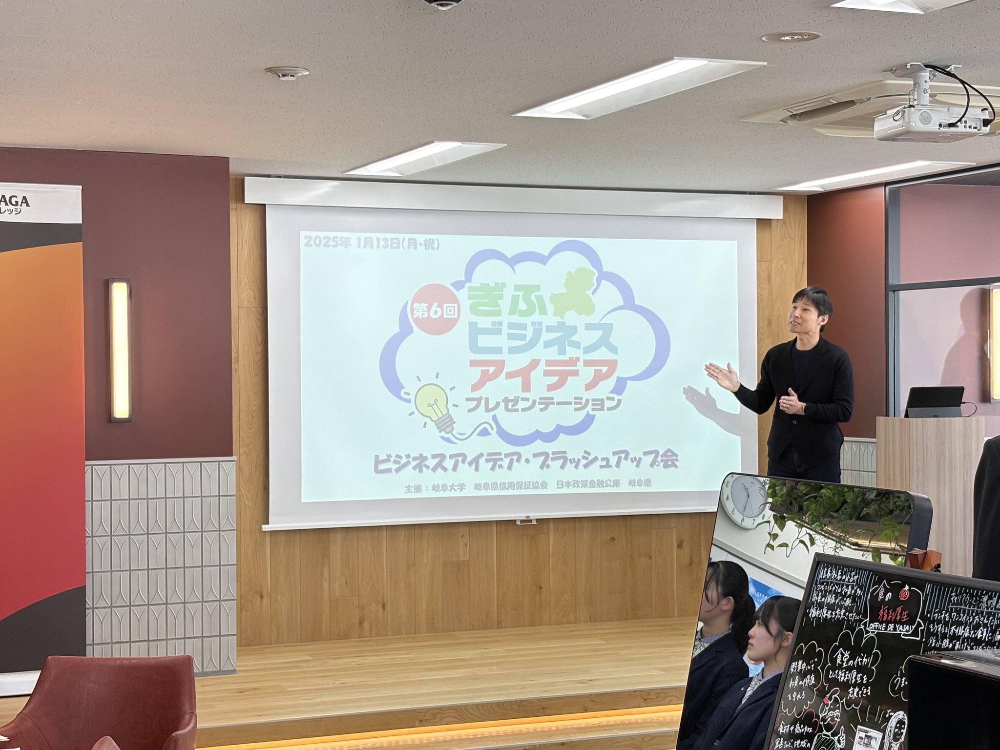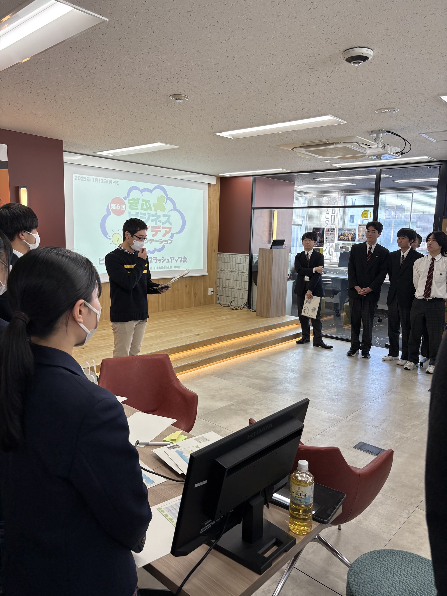 総合ビジネス科3年生課題研究(ビジネスプラン探究)チームは、2つのチームが、ぎふビジネスアイデアプレゼンテーション本戦への出場が決まりました。それに先立ち、1月13日(月)に、NOBUNAGAキャピタルビレッジで行われた、プレゼンテーションブラッシュアップ会では、岐阜大学、岐阜県信用保証協会、日本政策金融公庫の方々から、どのように伝えるのか、どのようなスライドを作成すべきかをマンツーマンで、教えていただきました。先生方の鋭い視点に、生徒たちは聞き入っていました。本戦まで、いただいたアドバイスを参考に、さらに良いビジネスプランにしていきます。