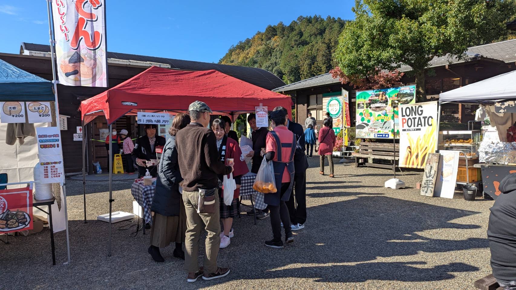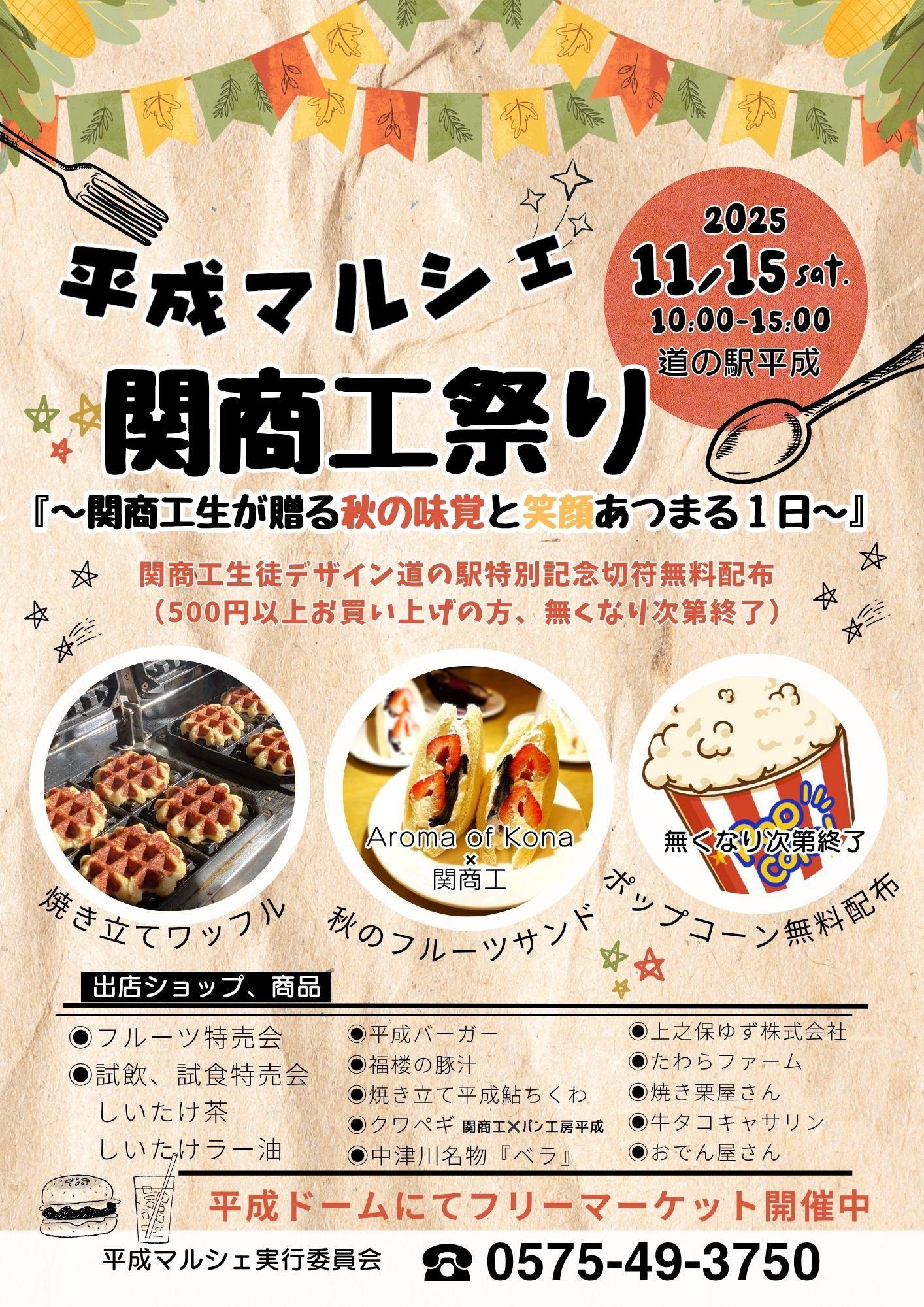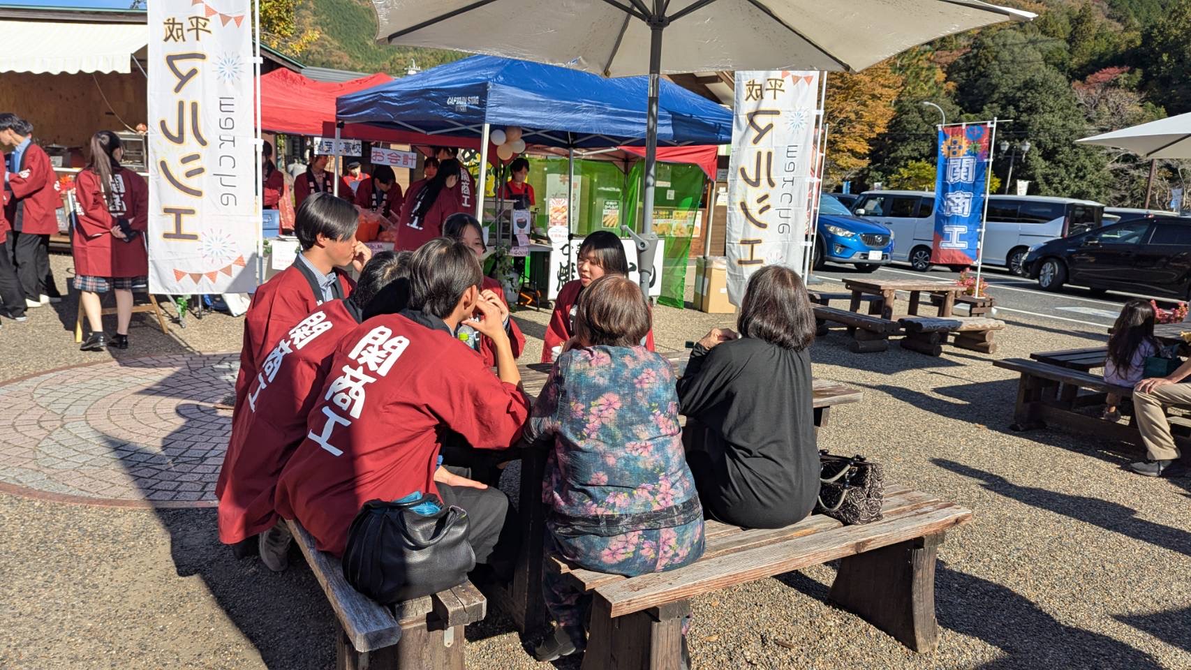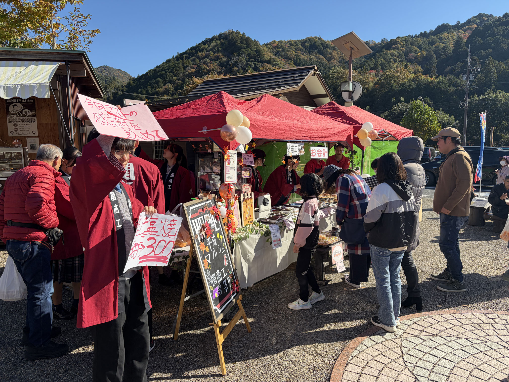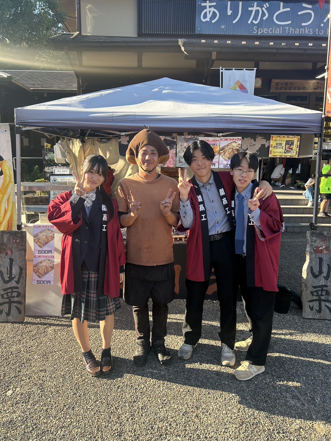11月15日(土)に3年生流通コースでは道の駅平成にて「関商工祭り」を開催しました。今回のテーマは「秋」~関商工生が贈る秋の味覚と笑顔あつまる1日~と設定しました。当日はアロマオブコナ様とのコラボによる2種類のフルーツサンドを販売しました。また、道の駅平成で作られた商品の販売や関商工生が毎年考案している「道の駅平成特別記念切符」の配布も実施しました。当日は天候にも恵まれ、多くのお客様にお越しいただきました。今回は、販売を通しての学びだけでなく、地元の皆様や来場くださったお客様、他の出店企業様とも交流させていただき大変貴重な機会となりました。当日お越しいただいた皆様、ありがとうございました。また、今回のイベントを企画していただいた道の駅平成様、商品開発にご協力いただきましたアロマオブコナ様に心より感謝申し上げます。
