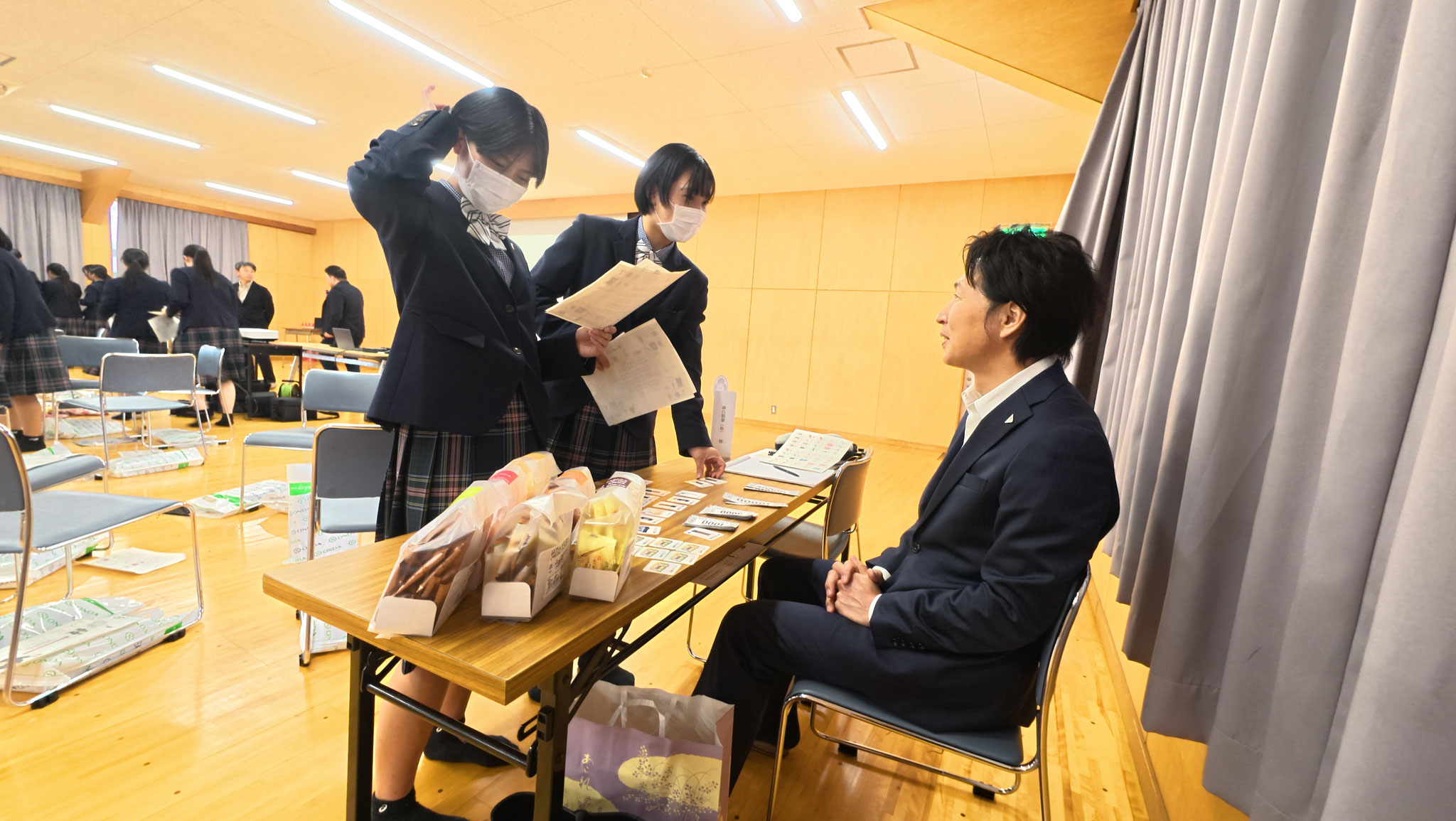 また、2年生の生徒に対しては、商品を販売する際の注意点( 言葉遣いや商品のPR方法 )などのアドバイスをいただきました。